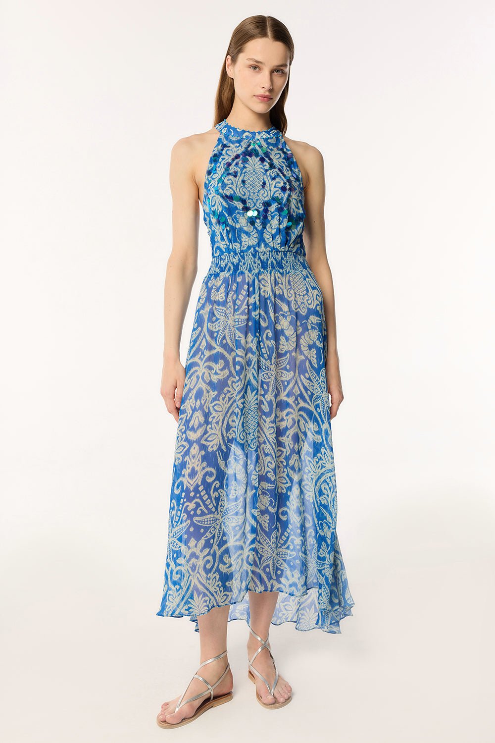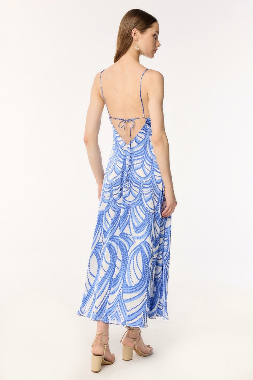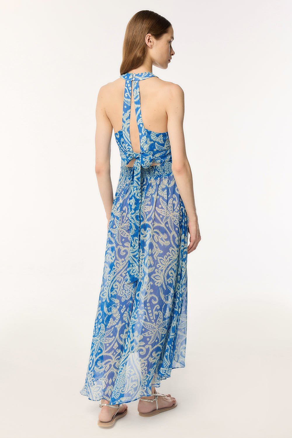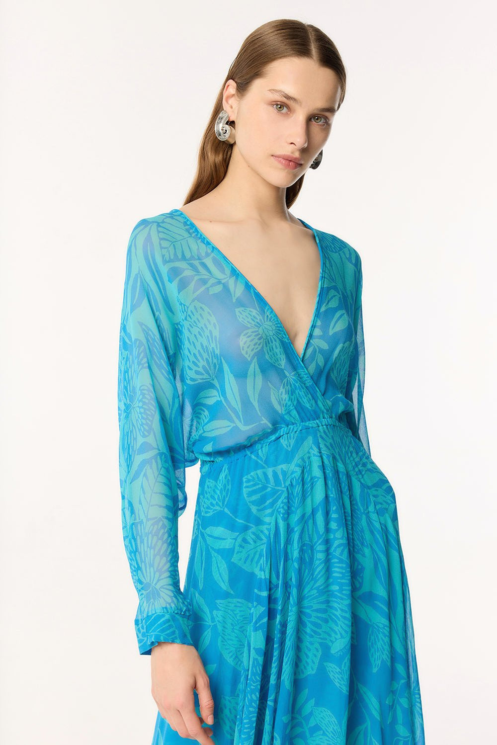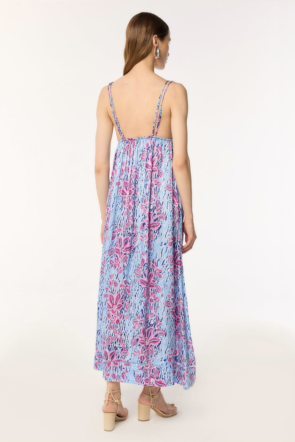 The Long Dress Nava is a shining example—crafted in a delicate blue floral print with a high