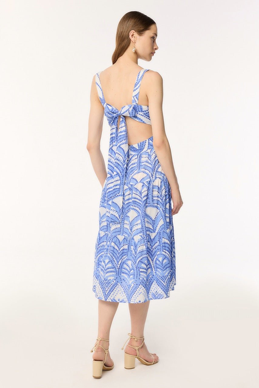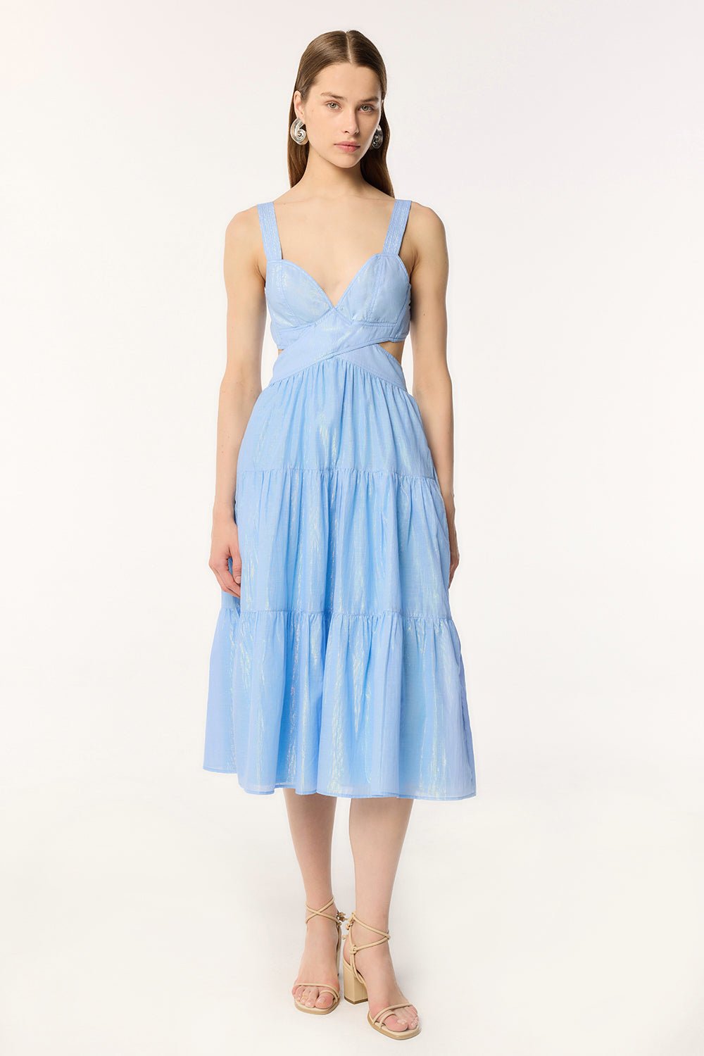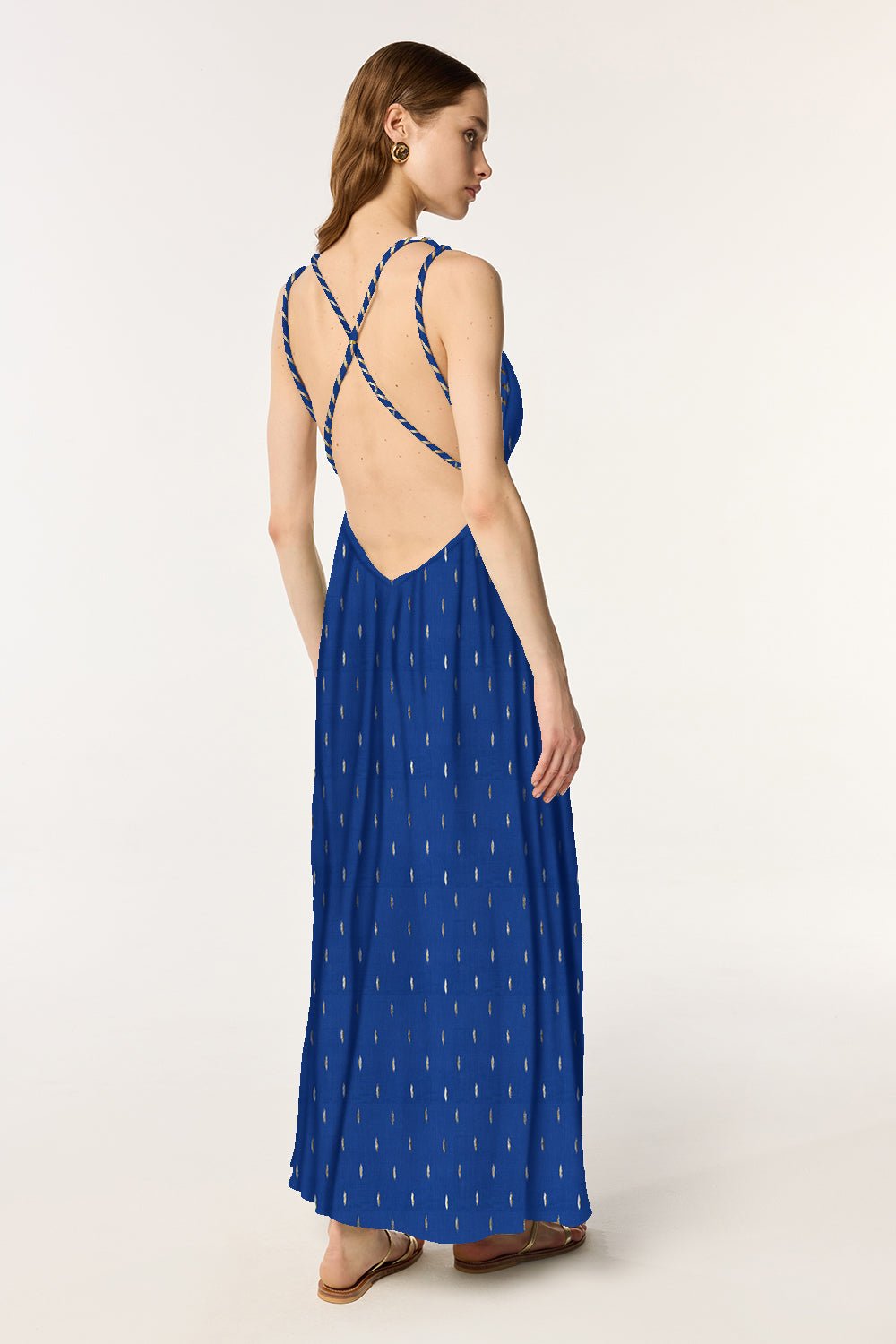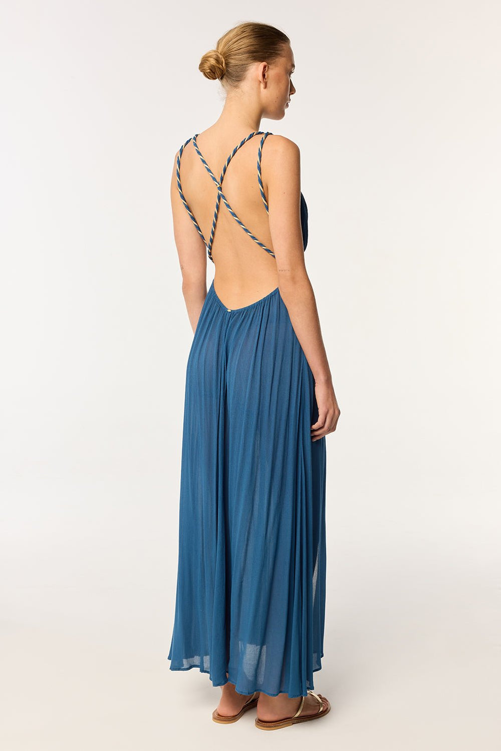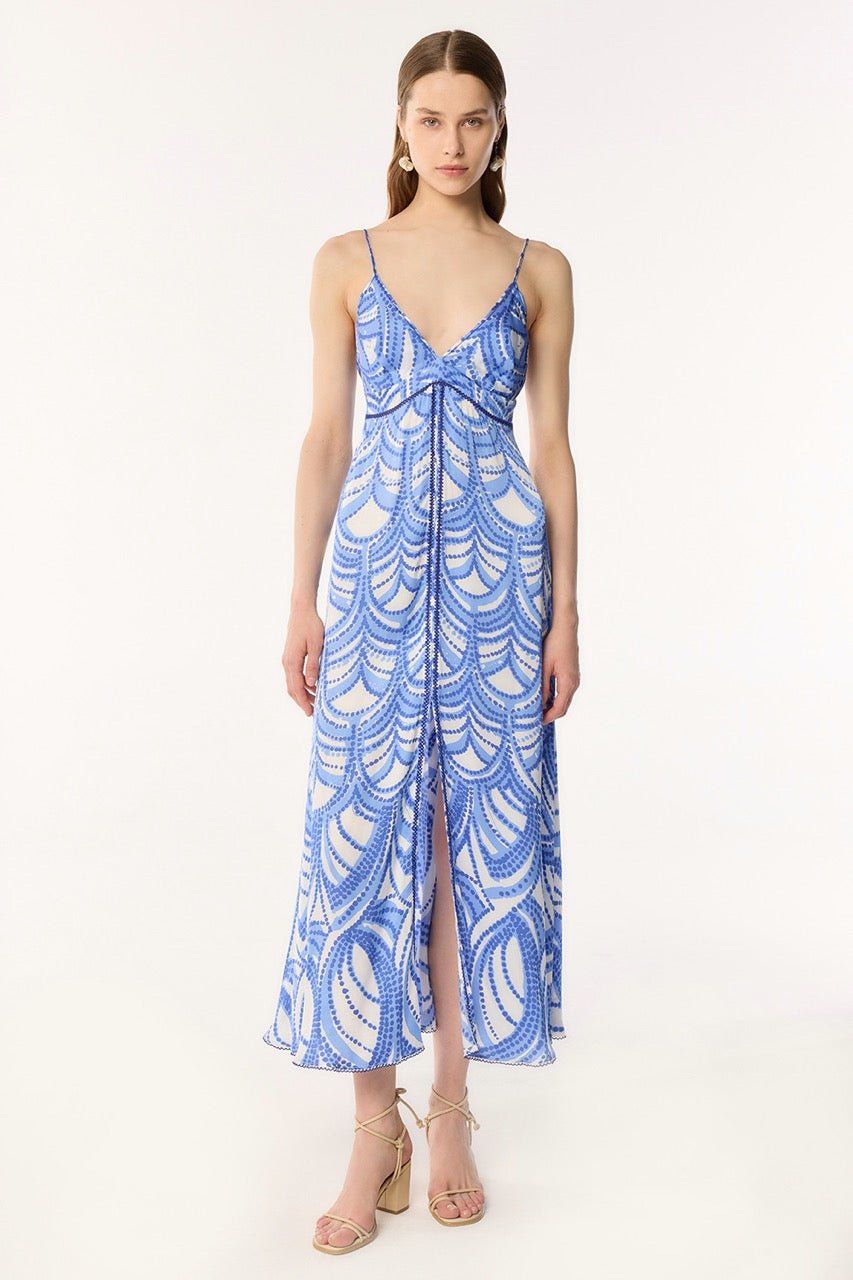 The Long Dress Nava is a shining example—crafted in a delicate blue floral print with a high
