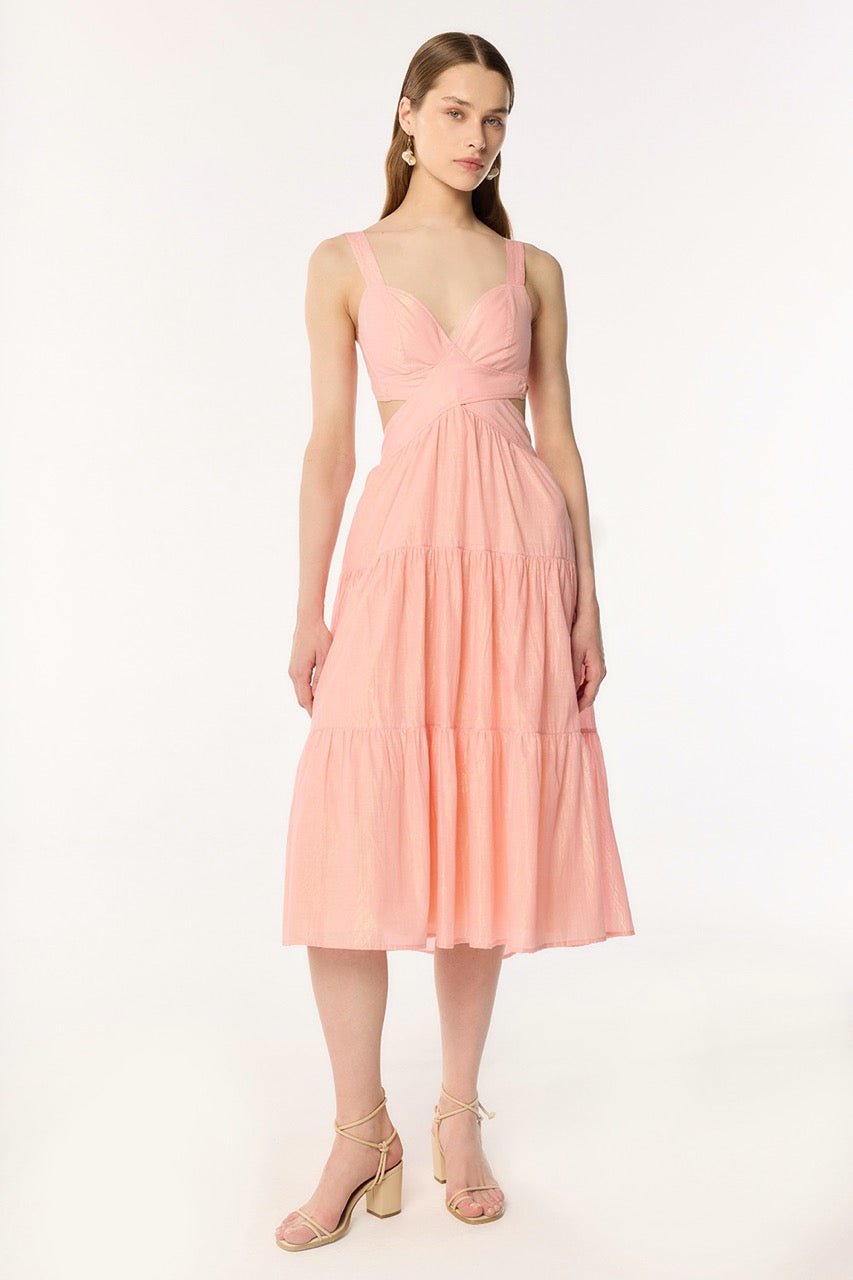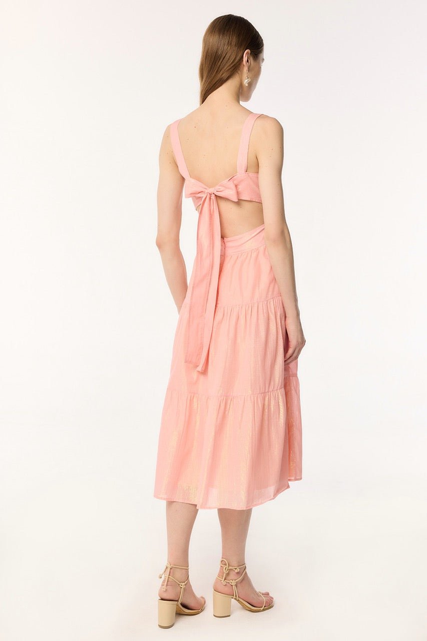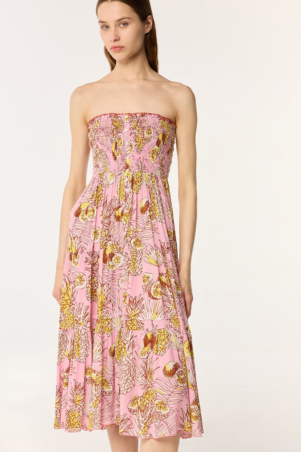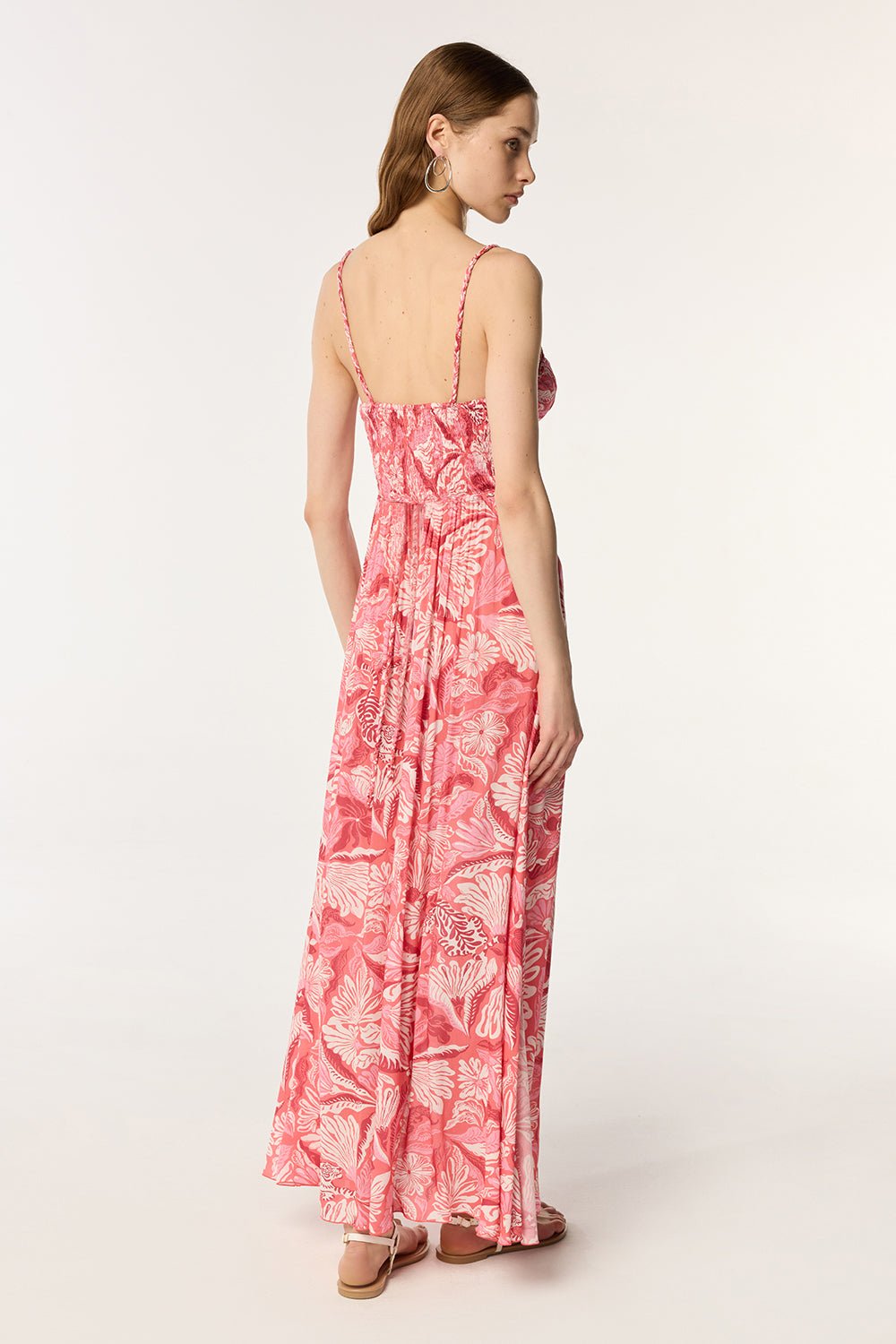detailed smocking, and subtle sheen make it the perfect showstopper for any resort evening. Pair it