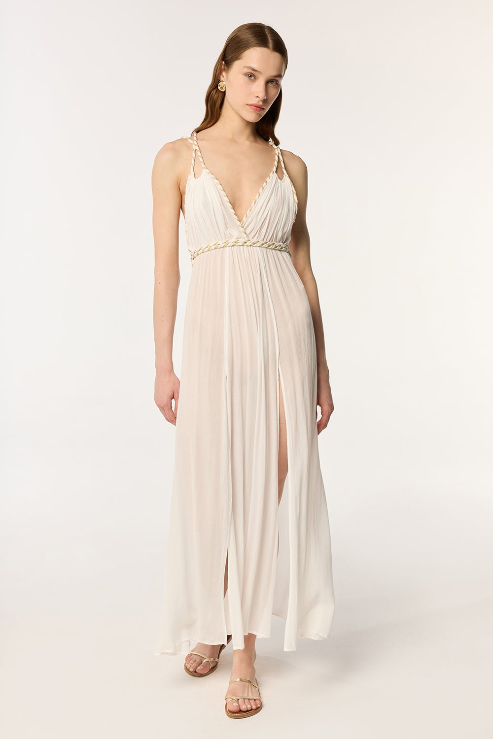 captures the essence of understated glamour. This dress is a tribute to slow days and salty hair. The