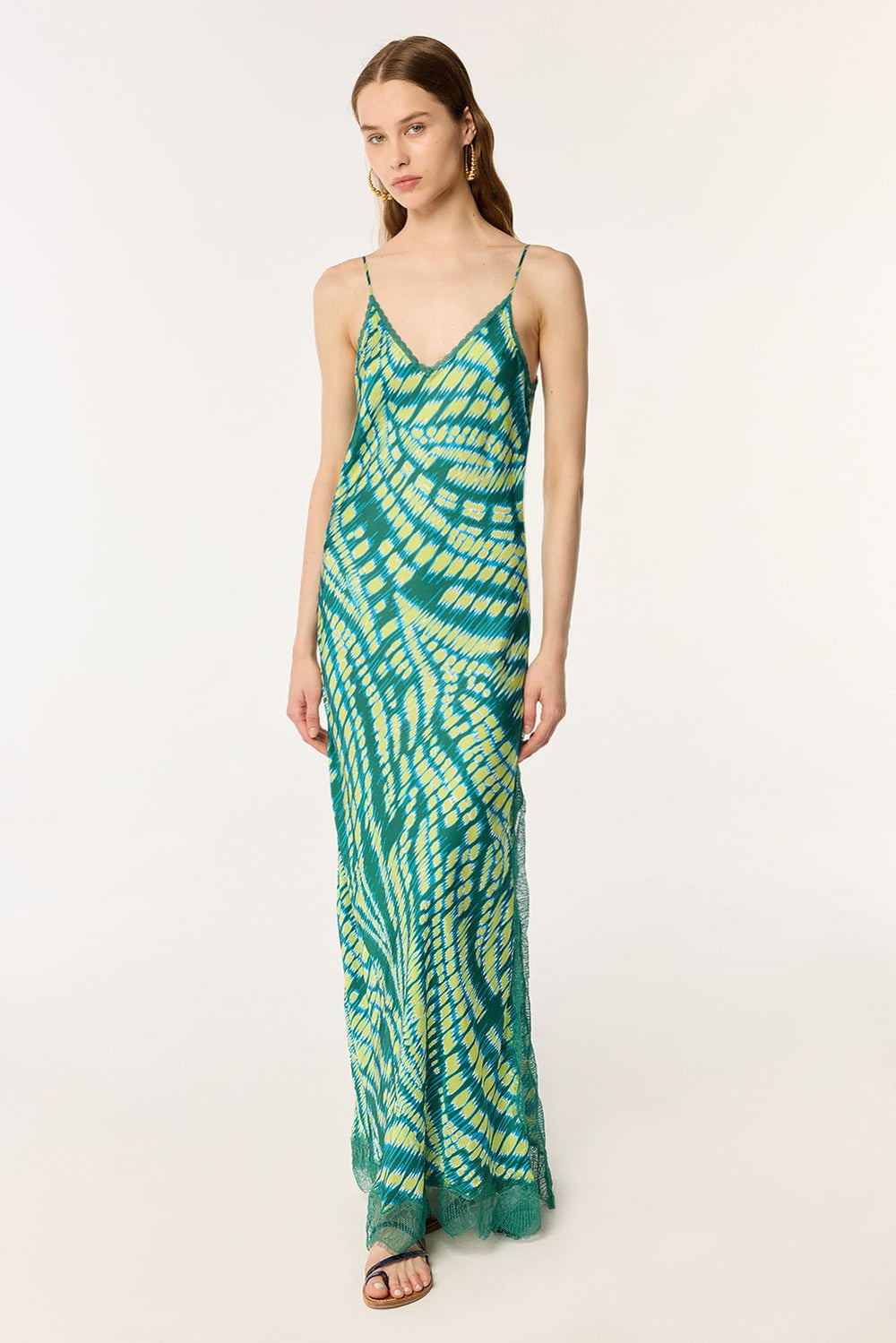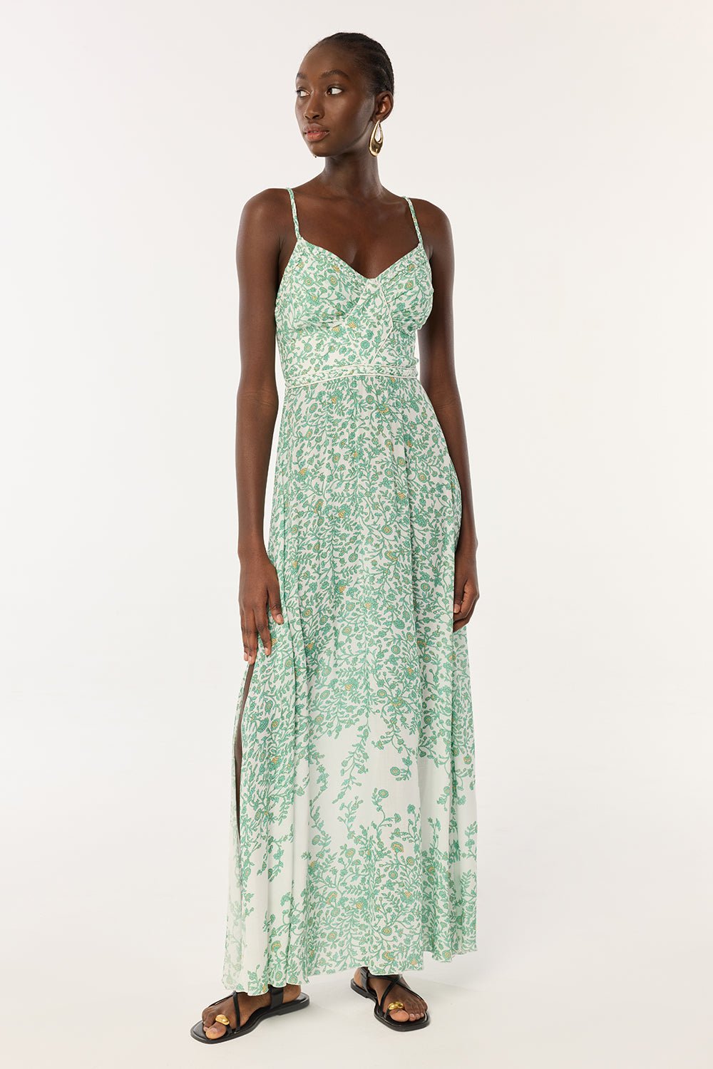 Looking for a bold statement? Try the Maxi Dress Sasha in green floral—a joyful piece with
