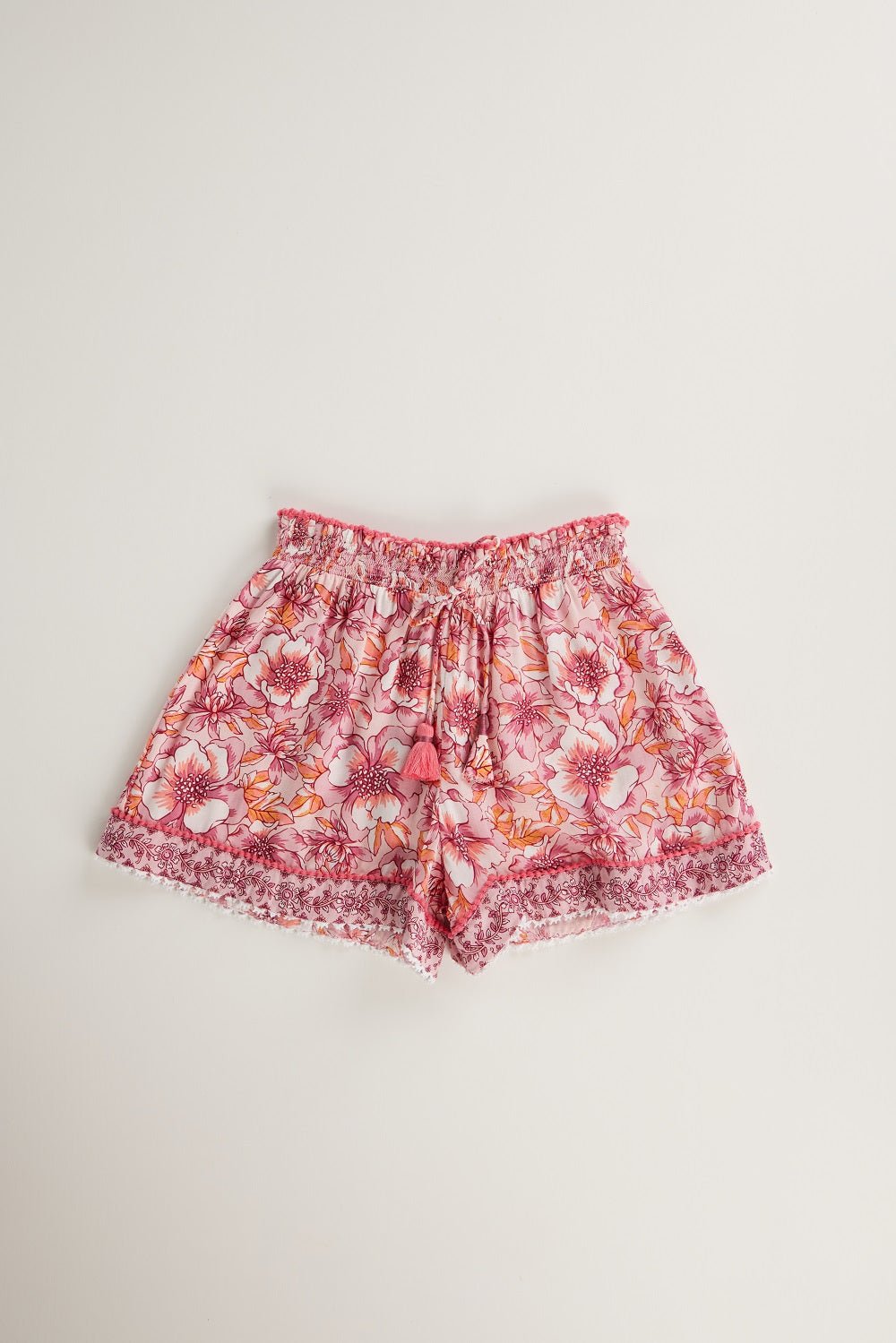 Ce joli short à imprimé fleuri est doté d'une taille élastique avec une fine ceinture à pompons. Le bas du short est marqué par un picot blanc fin et précis. Complétez le look avec le haut assorti Cindy .
