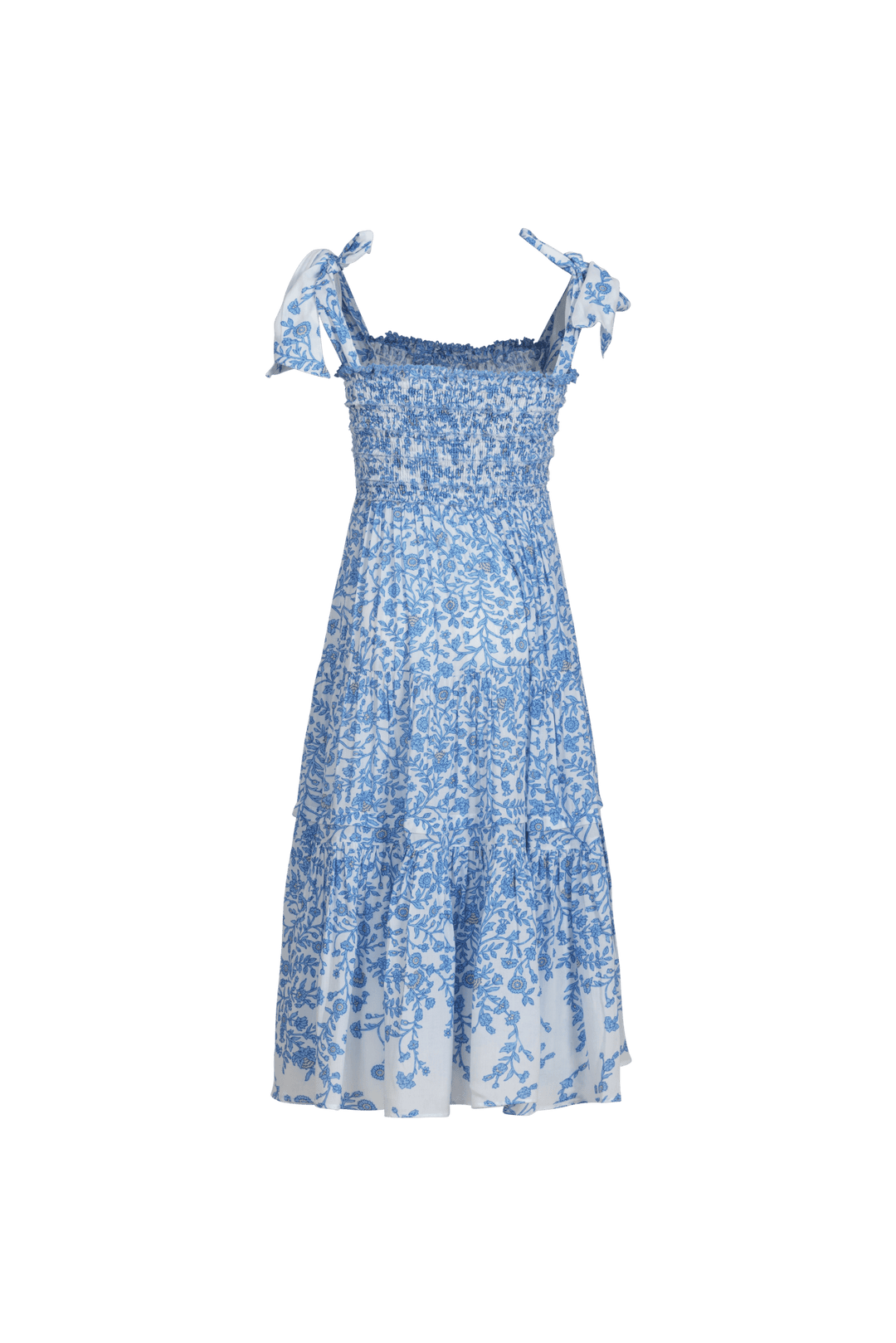 La Robe Longue Triny signée Poupette St Barth évoque féminité et romantisme. Dotée de bretelles ornées de nœuds délicats, elle peut se transformer en robe bustier en les retirant, pour avoir deux styles en une pièce.