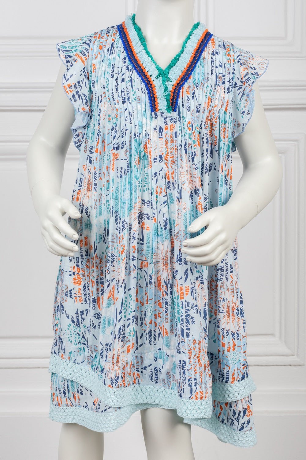 Notre robe Fantasy Sasha revient dans une douce Viscose éco-responsable. Optez pour cette adorable tenue maman-fille avec des franges colorées, des manches papillon et des détails de broderie à l'ourlet.