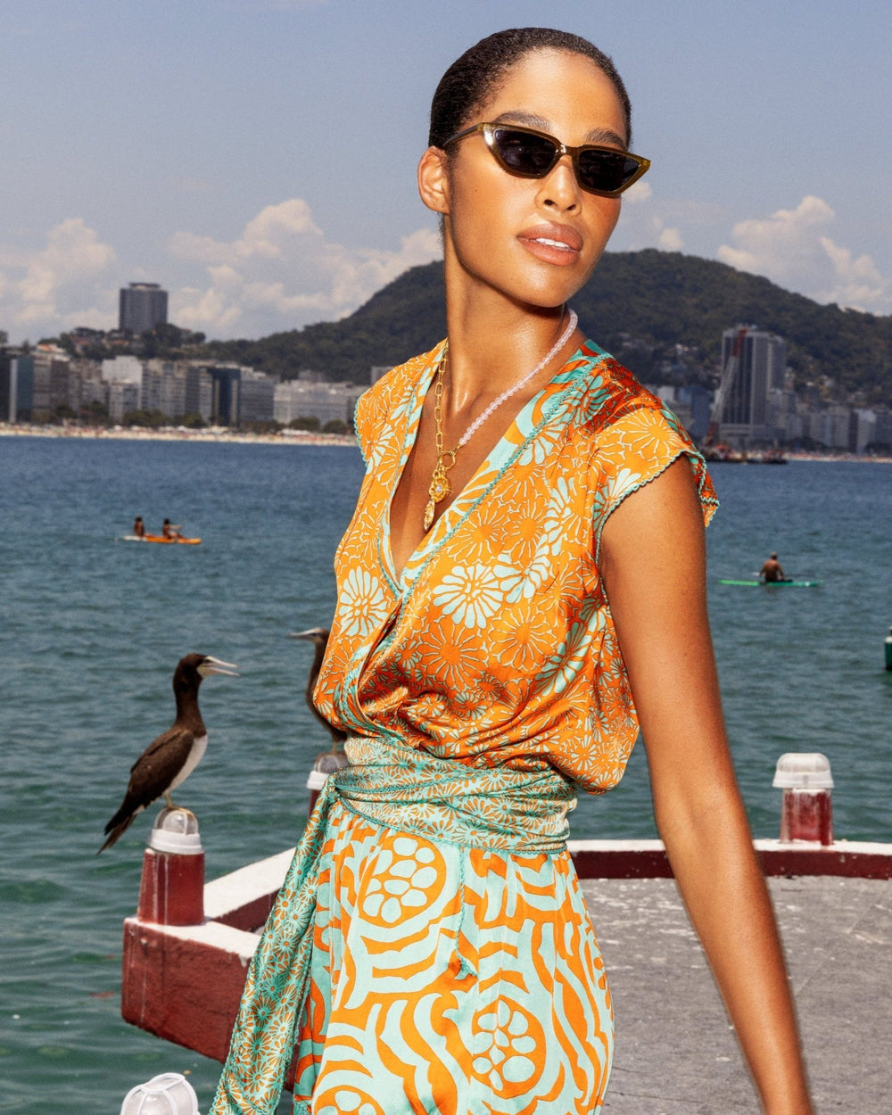 Le mannequin porte une petite taille/US 4/EU 36/UK 8 et mesure 5'10/ 178 cm.