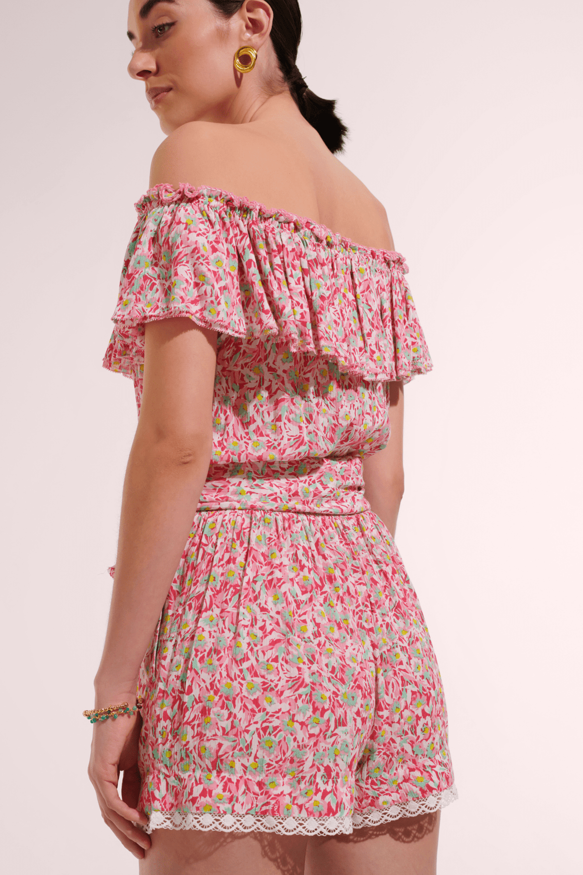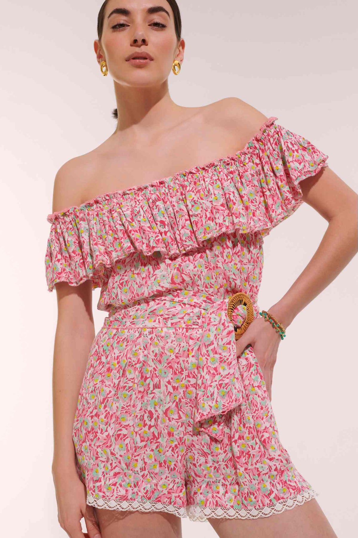 Un ajout polyvalent à votre garde-robe, la combinaison courte Bella offre une élégance moderne avec des détails volants et un design à épaules dénudées. Le tissu léger en viscose froissé ajoute de la texture, tandis que les poches pratiques ajoutent du confort. Passez en toute transparence du jour à la nuit dans cette combinaison chic et élégante.