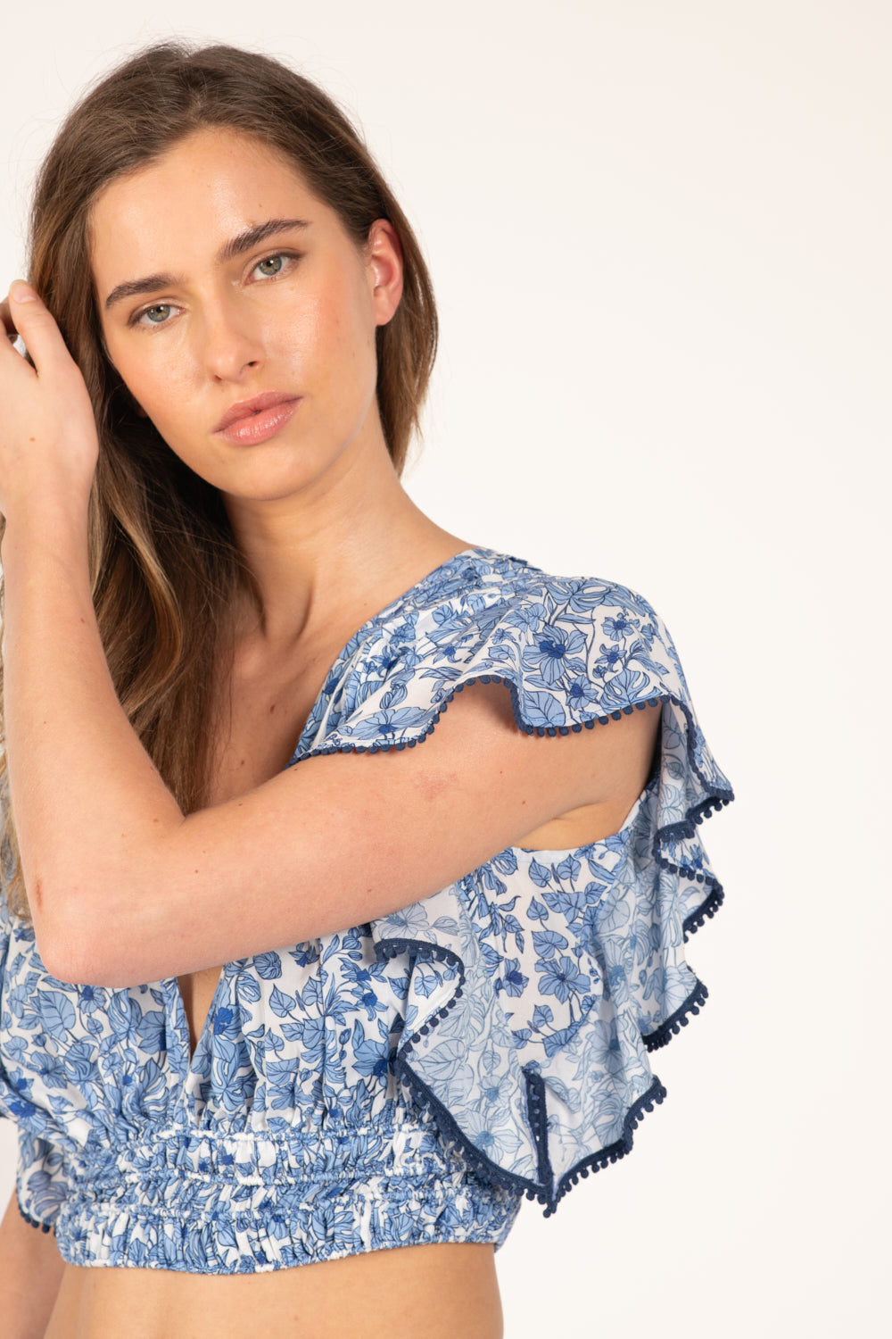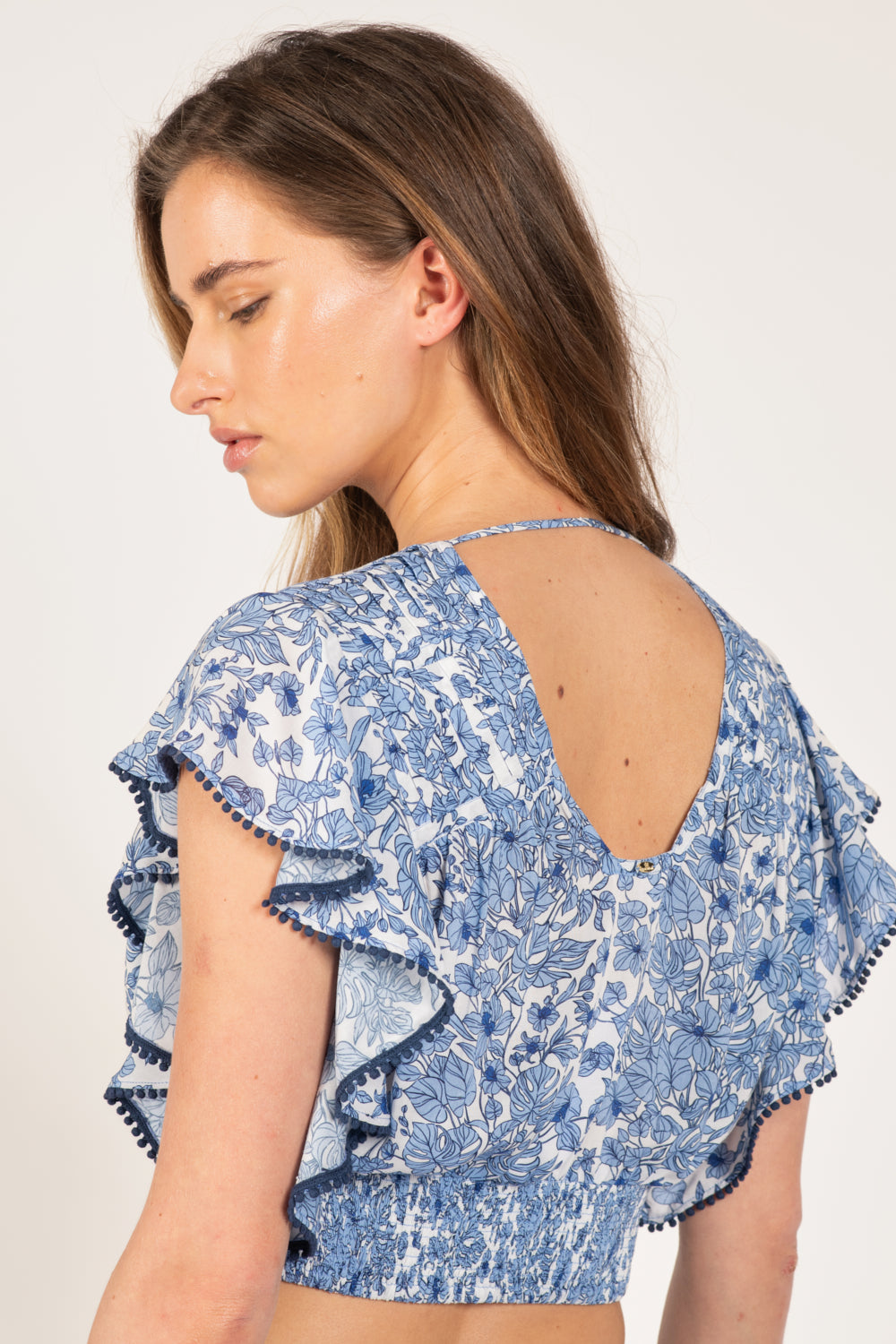 Manches courtes volantées, finition dentelle arrondie