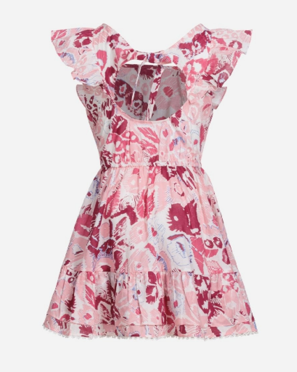 The Mini Dress Kora combines delicacy and simplicity with its sleeveless design and light ruffles on the shoulders.