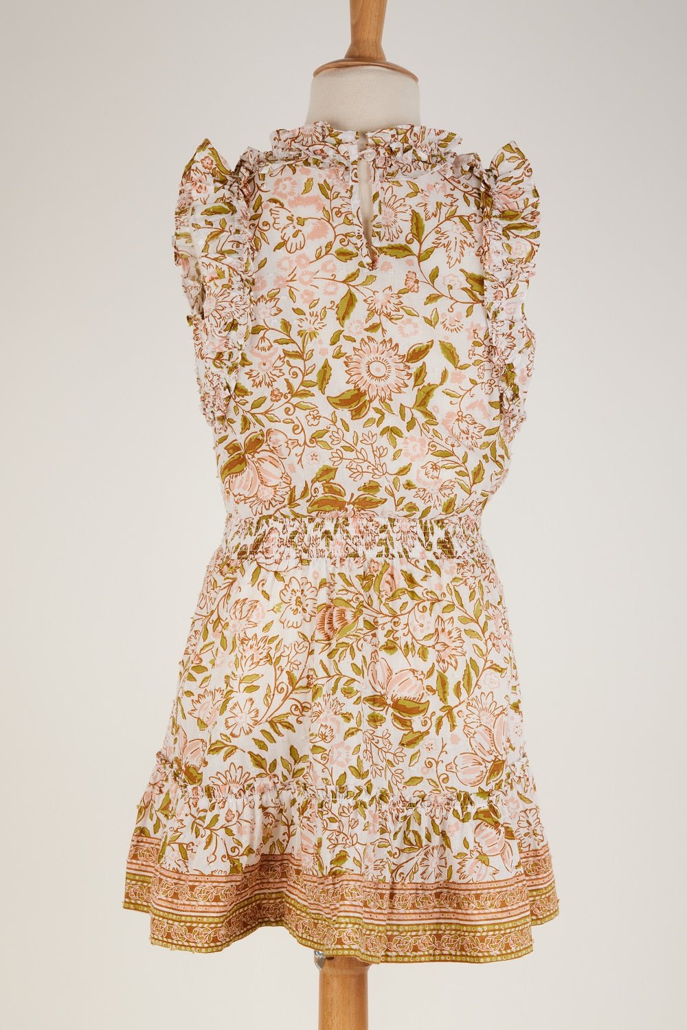 Our mini dress Triny is now available for kids! This airy dress features ruffled sleeves & neck with tassel ties, a smocked waist and a flared skirt. Triny dress is ideal for a casual daytime look.