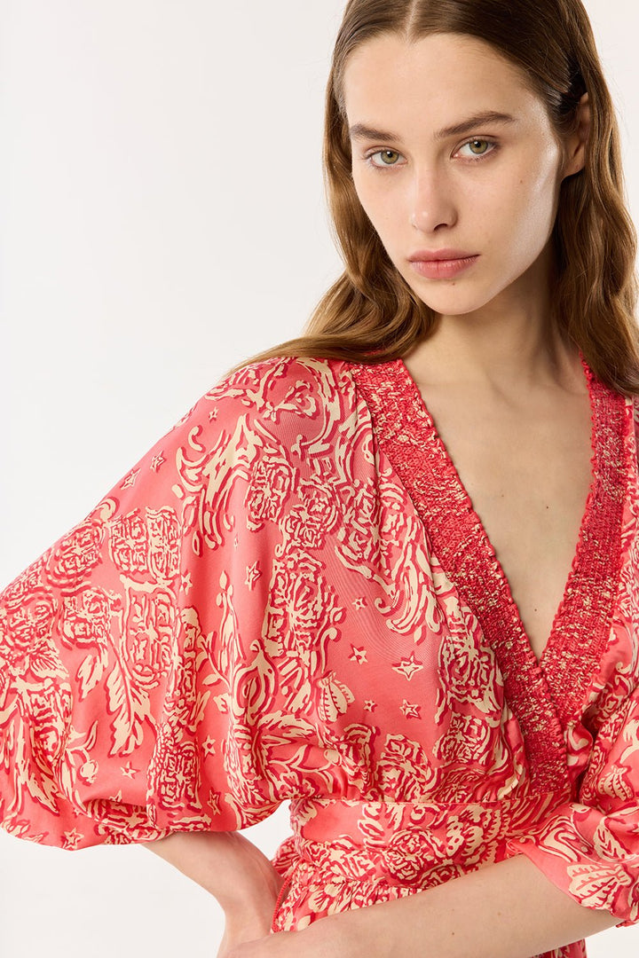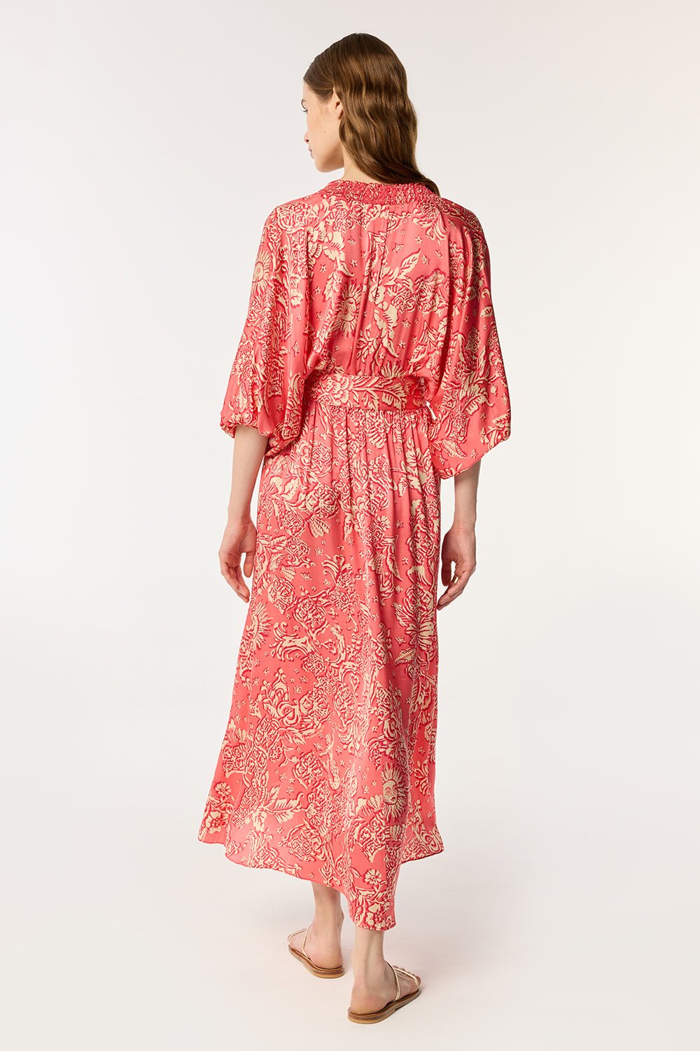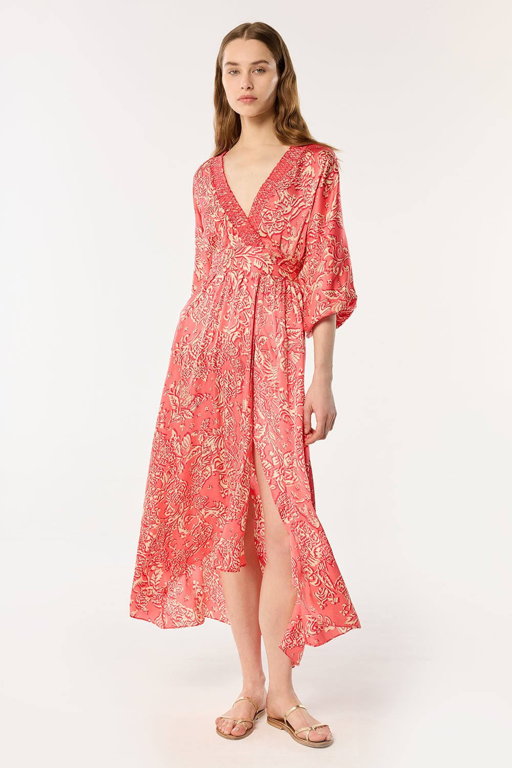 The summer season calls for elevated looks and Long Dress Celie is one of them. With a cross over, wrap-inspired design, it is held together at the waist and features wide kimono-style sleeves, together with a textured band along the neckline. A flowy and lengthy piece, this dress is an elegant show stopper.