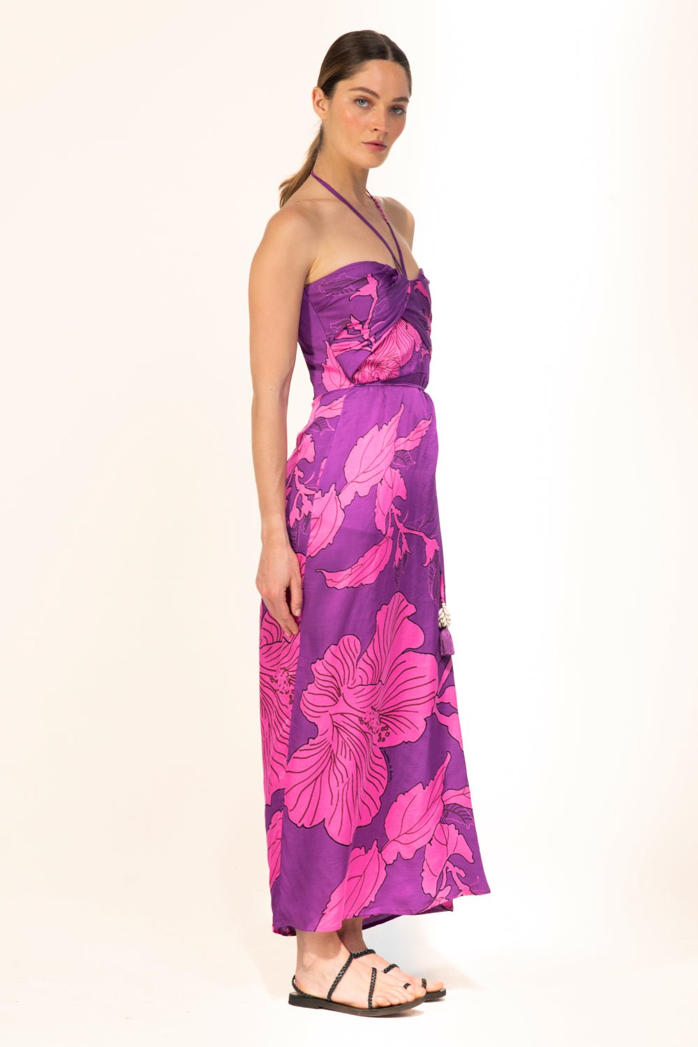 Long dress in viscose satin