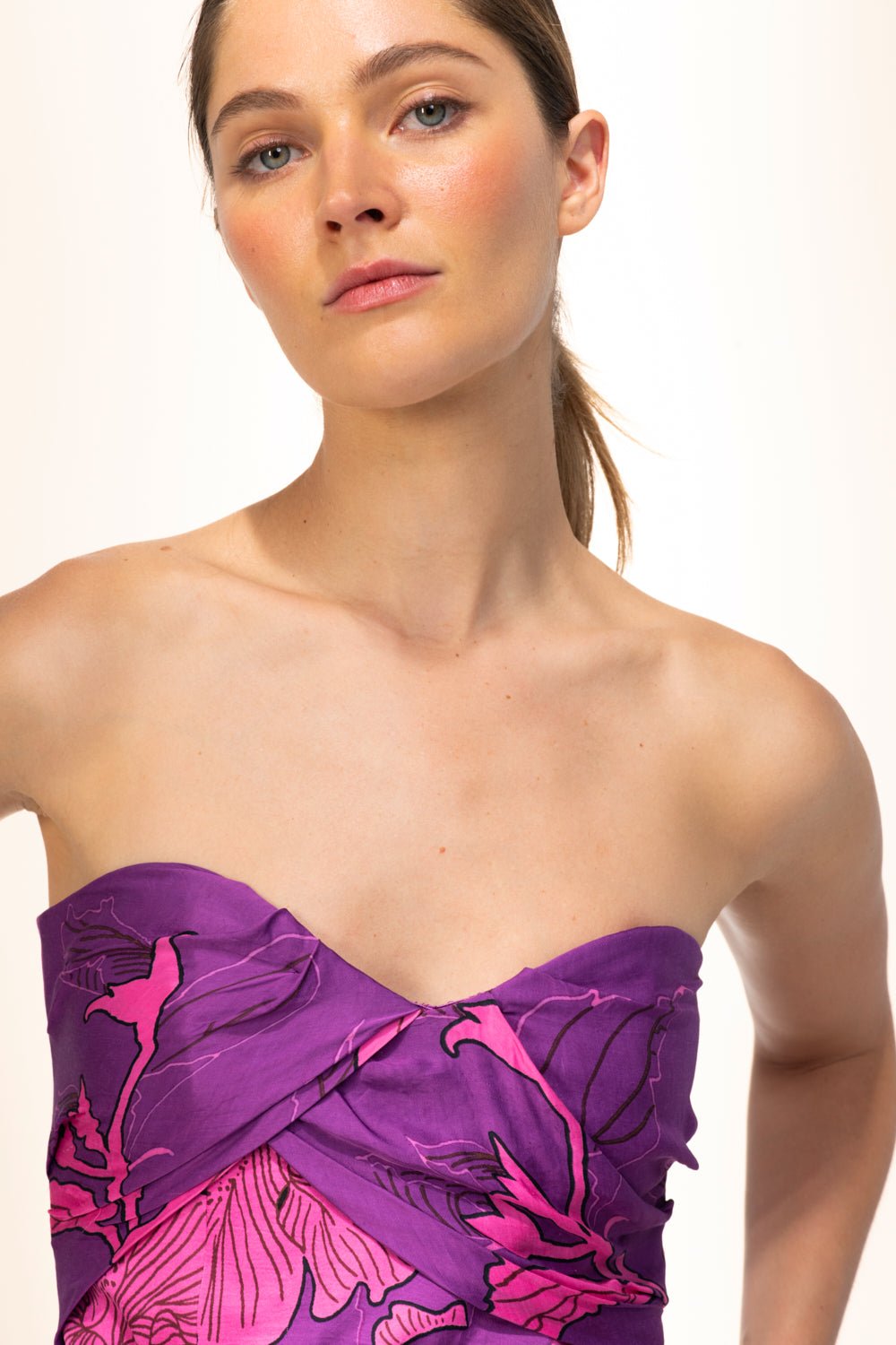 Asymmetric pleated bodice with boning and anti-slip tape