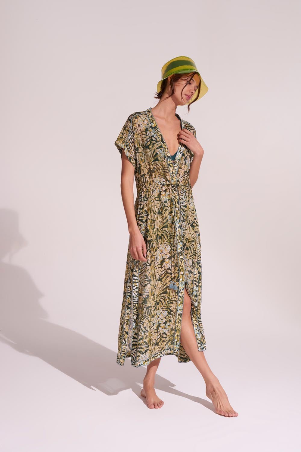 Mya tunic was designed as an oversized chemise dress with large side openings to reveal legs. The front can be opened up and worn with a short underneath at the beach. The drawstring waist makes it possible to cinch the waist to tighten or loosen. Wear this chic laidback style every day!
