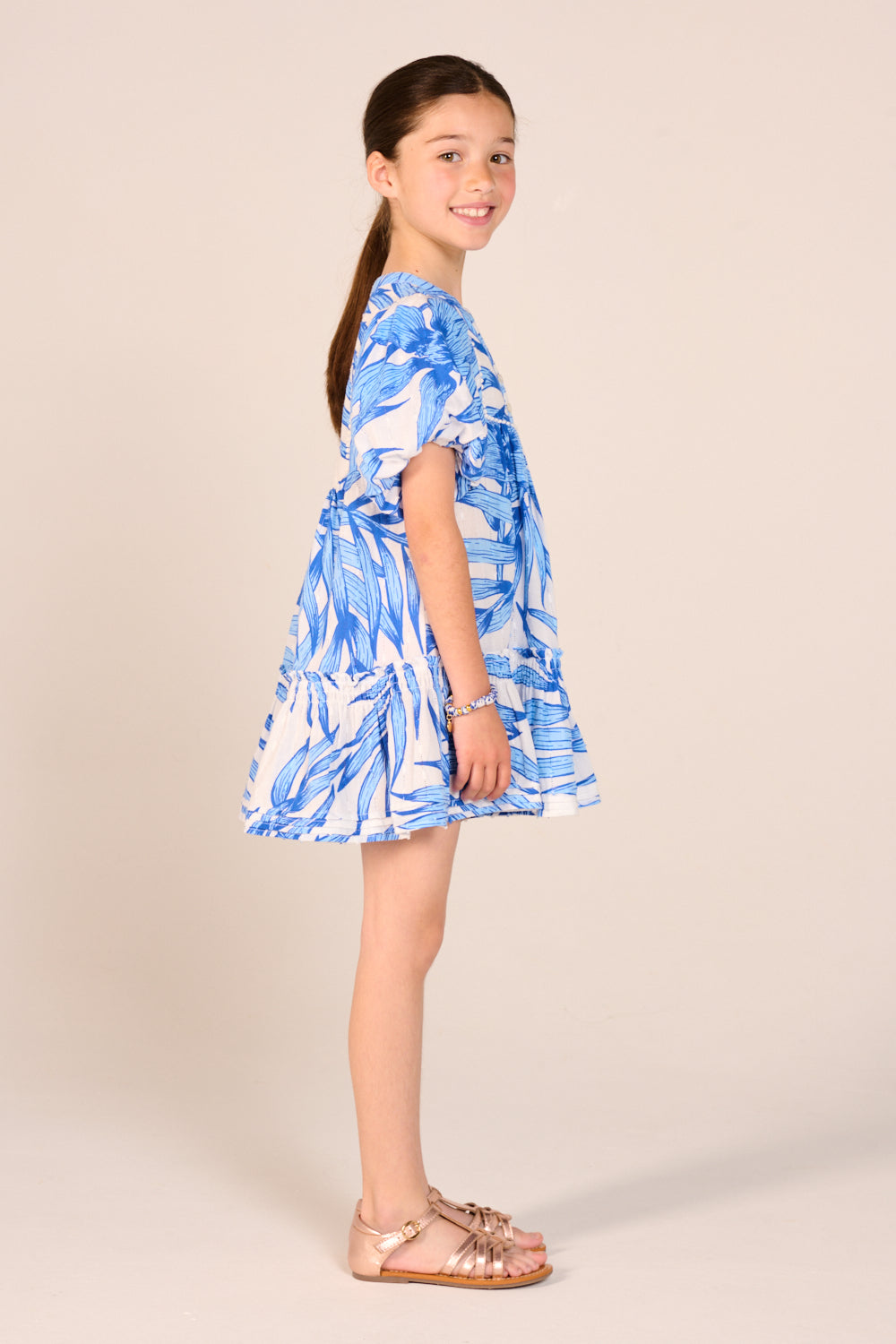 Mini Dress Cruz for girls - Blue Palm Leaf - Poupette St Barth