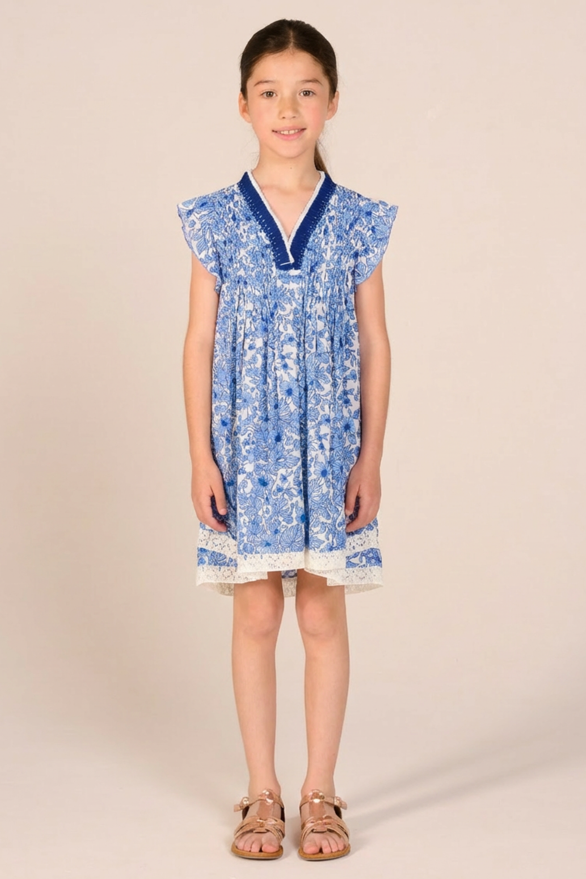Mini Dress Sasha for girls - Blue Aquaflora