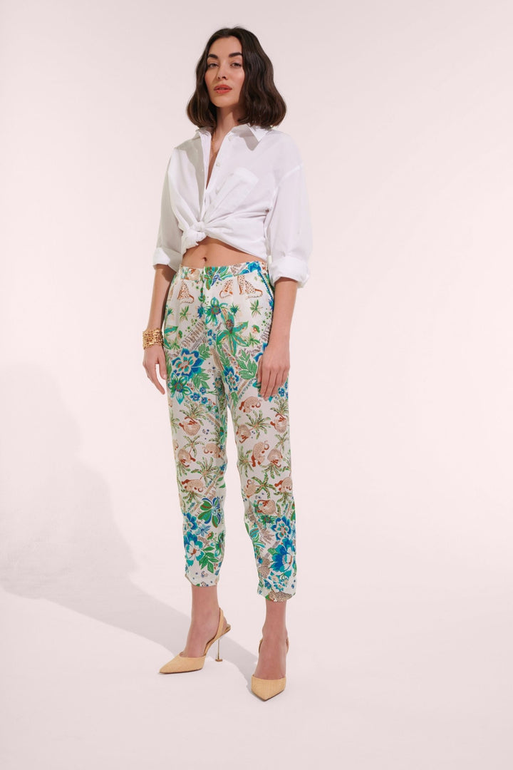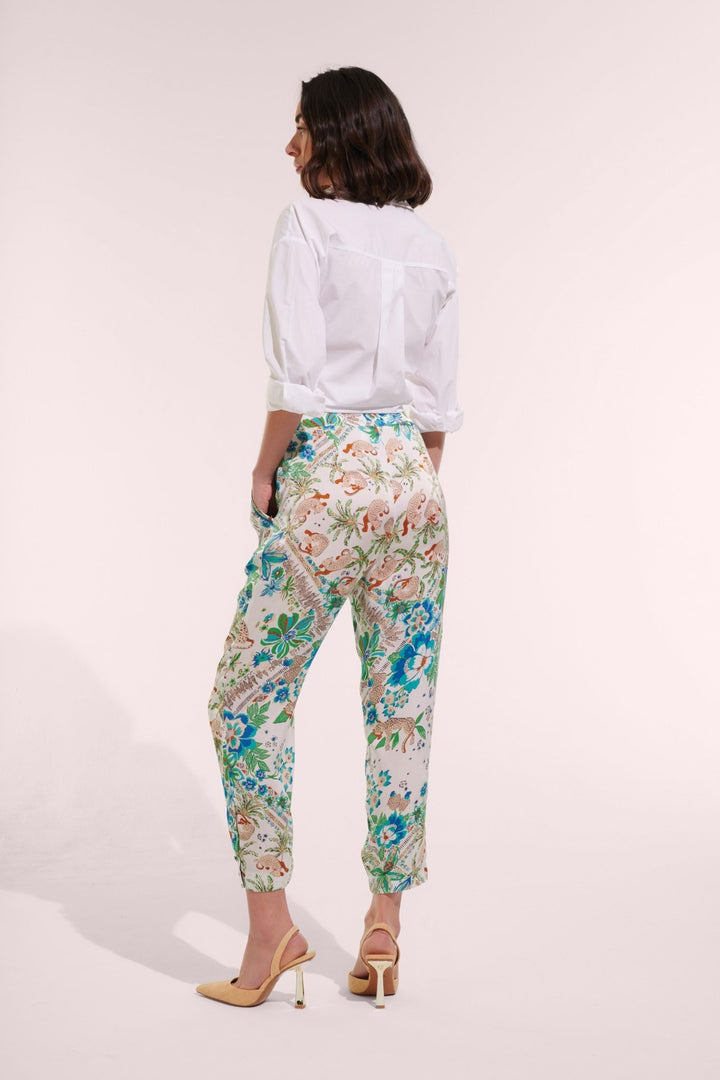 A captivating leopard-inspired print adds a sense of wild allure to the Pant Bel in Blue Leo Foulard. Made from high-quality fabric, for a comfortable and flattering fit.