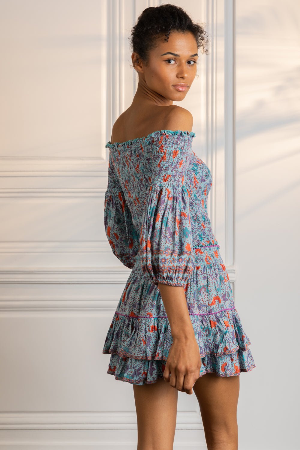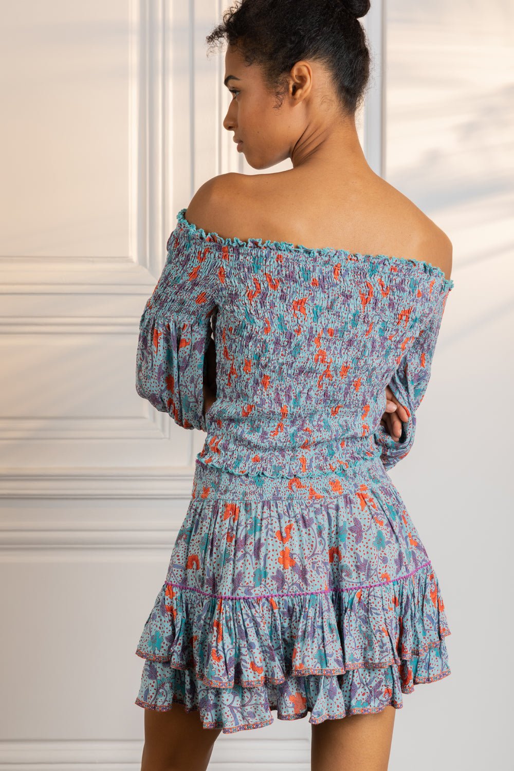 Showcasing an entirely smocked silhouette, this 90's inspired crop top, off shoulder with glamorous puffed sleeves highlights naturally your curves. Top ariel is sophisticated and angelic, pair it with the mini skirt Camila.